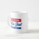 Coffee mug for Joe Biden supporters with a design in red, white, and blue with Bye Don Hello Joe!