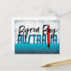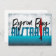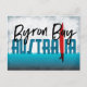 Byron Bay Australia surfing design. A red surfboard with blue and turquoise text - typography surfer theme.