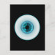 A cybernetic blue eye with various digital displays, including circles, dots, and squares, some lit up and some not, with a small crosshair in the middle and the word "vision" backwards on the bottom right.