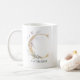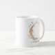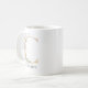 Letter C monogram floral. Letter C in golden brown texture accented with green watercolor compound leaves, flower blossoms and gold dust. Personalised with name in grey-green.