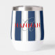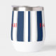 Sip in style with the Cabana Stripe Monogram in Thermal Wine Tumbler, featuring a modern navy blue and grey stripe design with a personalised monogram. This insulated tumbler keeps your favourite wine or beverage at the perfect temperature, making it ideal for outdoor gatherings, picnics, or cosy nights in. A perfect blend of sophistication and practicality.