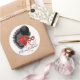 Round sticker to match our "Cabaret" invitation with an image of a black feathered fan, red and black balloons, and a red mask. Optional text. See matching custom-cut vinyl sticker, invitation, envelope, confetti, favour bag, favour box, favour tag, gift bags, label and wrapping paper. See the entire Cancan Sticker collection in the INVITES | Stickers & Labels section.