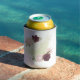 Beautiful can cooler featuring cabernet purple and pink flowers and green leaves