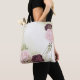 Beautiful tote bag featuring cabernet purple and pink flowers and green leaves