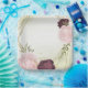 Beautiful wedding paper plate featuring cabernet purple and pink flowers and green leaves