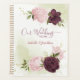 Beautiful wedding planner featuring cabernet purple and pink flowers and green leaves