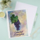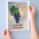 Cabernet Sauvignon Wine Grapes Painting: The painting displays Cabernet Sauvignon wine grapes. The quote states, "A red wine with a distinctive black currant flavour with hints of tobacco, cedar, and mint. It has a well rounded style and can be considered the king of red grapes." Rendered in watercolor.