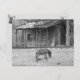 Cabin and Donkey in B&W Postcard