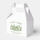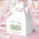 Green cabin crew bachelorette party favour box for a camping themed event. Personalise it with your event details.