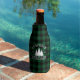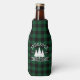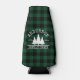 Family Name Cabin Green Buffalo Plaid with Pine Trees Bottle Cooler