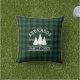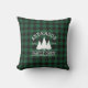 Family Name Cabin Green Buffalo Plaid with Pine Trees Outdoor Throw Pillow