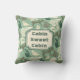 Here is a cute pillow for that weekend cabin! It features a delightful pattern of winter forest animals, including a bear, fox, deer, rabbit, squirrel, and bird. Some are wearing winter sweaters! The pattern is placed on a medium forest green background. One side of the pillow has a matching dark green lined banner, with text that says "Cabin Sweet Cabin". The text can be easily changed to anything you'd like.
