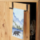 Cabin, Lake, Mountains, Trees, Bear Winter Scene Tea Towel