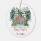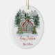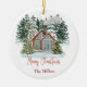 Cabin Merry Christmas Customisable Name Ceramic Ornament