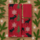 Decorate your cabin with this rustic-style bath towel set. The towel set features a moose, snowflake, and pine tree on a Christmas red background. Buy this festive towel set to update the look of your holiday bathroom or as a gift for that special someone.