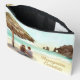 This beautiful zipper pouch features the famous arch (El Arco) at Lands End on the Baja peninsula in Mexico. The watercolor painting of the arches was painted by my daughter which makes this bag especially unique. Below the arches is a wave crashing along the shoreline with a happy couple sitting under a palapa, watching the sun set. Text says "Honeymoon Essentials." The back has a watercolor shoreline with a place to personalise with a name. Colours include brown, aqua, turquoise and sandy yellow.