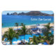 Magnet shown with a photo print of a beach resort in Cabo San Lucas, Mexico.