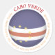Circular sticker with the Cape Verdean flag mapped onto a globe. Labelled with Cabo Verde and the islands Brava, Fogo, Santiago, Maio, Boavista, Sal, Sao Vicente, Sao Nicolau and Santo Antao.