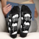 These are fun socks for anyone who is a lover of cacti and succulents to add to their wardrobe. This pattern features white line art cacti on a black background.