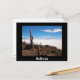 Postcard with giant cactus on Isla del Pescado inside the Salar de uyuni salt flats near Uyuni in Bolivia with a black border and the text: 'Bolivia'.