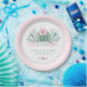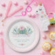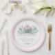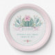 Cactus baby shower paper plates with cute pink floral cactus on a pink and green background. You can add your own text to personalise.