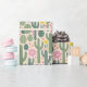 Explore Cactus Bloom Bliss Wrapping Paper, featuring delightful cacti and scattered flowers on a serene white background. Perfect for adding a touch of natural charm to your gifts.