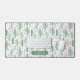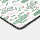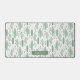 Cactus botanical print with a variety of flowering cacti, with cute falling flowers and compound leaves. Set on white. Personalise with your name or message in white text on green.