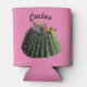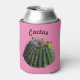 You can change the background colour and change the text on this can insulator sleeve. The image is derived from my original acrylic painting, Barrel Cactus.