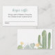 A cute fiesta style baby shower diaper raffle card. This cactus themed enclosure card features a beautiful watercolor desert design in delicate shades of dusty blue, yellow, and desert green. Perfect for a boho or modern southwestern baby shower fiesta.