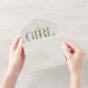 Neutral boho baby shower theme with "GIRL" and "BOOKS" lettering in leather inspired faux texture decorated with boho cactus, florals and other botanical designs. Botanical designs at corners. Background is watercolor inspired.
