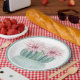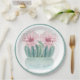 A pattern of a watercolor Cactus Flower in the centre of a ring of pink.