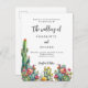 A white background decorated with colourful floral cacti. Personalise and your names and details.