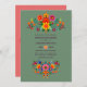 Cactus Green & Coral Rose Folk Art Fiesta Wedding Invitation