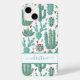 A chic white background decorated with a whimsical pattern of painted cactus, cacti and succulents and red and green hearts. For teen girls and women.