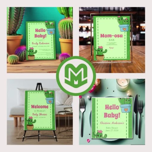 Cactus Hello Baby Shower Green Pink GrassDesigned by Max Marshall