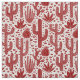 An original hand drawn pattern made up of a variety of cactus and succulent plant motifs in a desert like landscape.