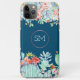 This phone case features a modern floral design with faux gold monogram on an ocean blue background with cactus, succulent and coral flowers. Personalise it with your own initials.