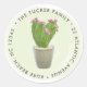 Cactus Succulent Pink Floral Potted Plant Address Classic Round Sticker