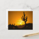 The hot glowing sun sets behind a hill silhouetting the tall desert cactus.