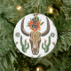 Cactus Western Country Aztec Bull Skull Ceramic Ornament