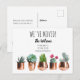 A beautiful design incorporating different types of cacti and succulents planted in chic gold rose flower pots. A unique botanical themed pattern with splashes of green, pink and rose gold colours. An ideal design for anyone who loves cactus, succulents or botanical designs. Ideal new home moving announcement postcard. Customise the text and make it your own.