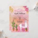 On a multi-layered watercolor background surrounded with golden sparkles, you'll find a cute Llama amid a trio of flowering cactus plants in this original Birthday Party design by Holiday Hearts Designs (all rights reserved). Simply personalise with your celebration details and add to cart.