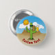 Cartoon of smiling cactus with sunglasses in desert landscape holding a beer mug and giving thumbs up. Custom text.