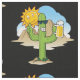 Cartoon of smiling cactus with sunglasses in desert landscape holding a beer mug and giving thumbs up. Custom background colour.