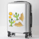 The stick looks amazing. Unfortunately, it would not stick on our suitcase as it was textured. When we found a non-textured (smooth) suitcase, the sticker stuck and looks great. The printing looked awesome.