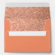 Cadmium orange envelope with the inside featuring a photo of glitter in a matching shade of orange. It is faux glitter as it is an image that will print on the inside.
