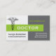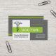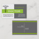 Caduceus doctor modern minimalist grey, white, green feminine business card featuring a black caduceus doctor sign on white and grey and white background and the text “DOCTOR” in a lime green band. Perfect eye-catching professional medical business card design for doctors.