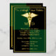 Medical School graduation card bearing the Caduceus symbol and degree (M.D., D.O., R.N., etc.). This invitation features a royal blue/black design on both sides. Available in numerous colors. All print and accents on front of invitation are genuine Italian foil. Back of invitation includes graduate name, Can be personalized with your own images, artwork, etc.