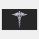 Caduceus Medical Symbol on Black Rectangular Sticker