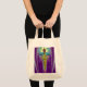 The printing came out very well, better than I had anticipated. The natural color fabric is sturdy with strong seams and comfortable handles. This tote fits easily over my shoulder. As it is filled, the bottom flattens out--very cool! I would buy this product again. This grocery tote holds a lot of groceries! The image quality was very good. The colors were a little darker than I had expected. The darkness may have been due to printing on a natural color fabric rather than on white. The cat design is attractively centered on the tote. The spirit of the design is very lively, just as it appears on the Zazzle website.